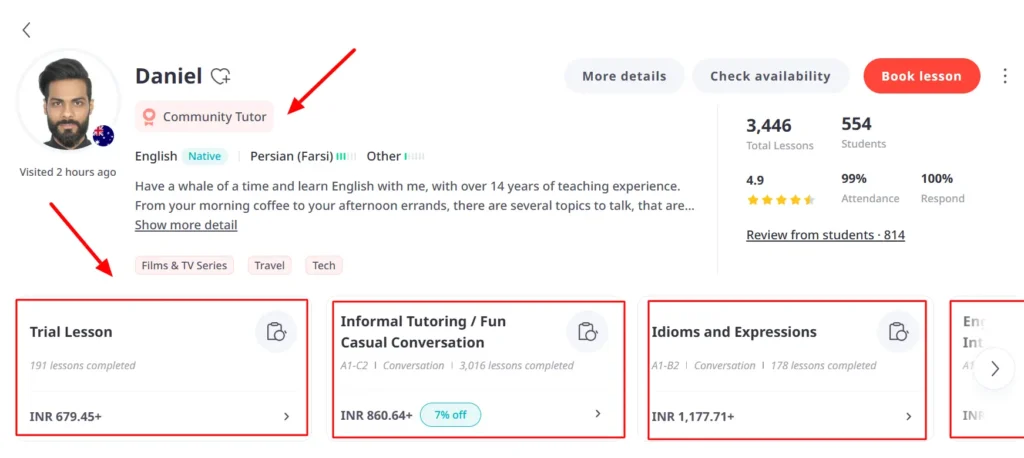 After browsing several tutor profiles and watching their 1–2 minute intro videos, I finally shortlisted a few options. But selecting the right one still took me about 30 minutes.