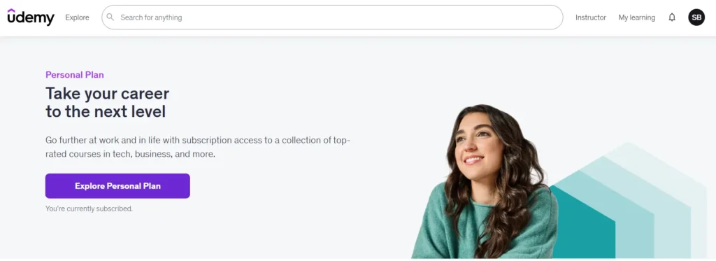 Think of the Udemy Personal Plan as a subscription-based learning library.
